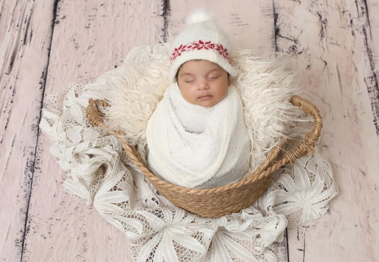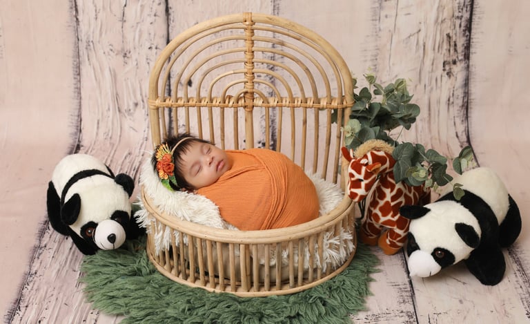 Our newborn photo shoots in Noida are conducted in a calm and hygienic studio environment where every session is baby-led — ensuring your child’s comfort and safety at all times. The best time to schedule a newborn shoot is within 5–20 days of birth, when babies are still sleepy and easily poseable. We provide all necessary props, premium wraps, baskets, backgrounds, and themed setups so you don’t have to worry about a thing.